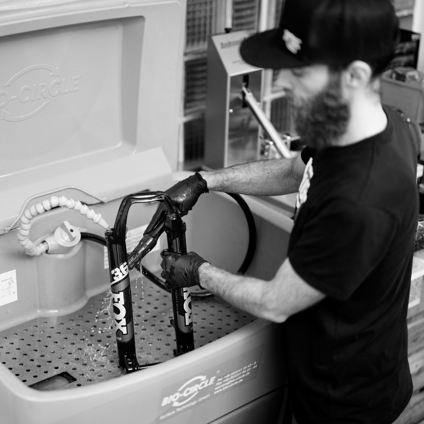 Wenn es um Fragen zu Federelementen geht bin ich ein Nerd 🙂 ich war schon vor 15 Jahren auf meiner ersten FOX und auch ROCK SHOX Schulung weil ich mich unwahrscheinlich für die Technik im und am Mountainbike interessierte. Natürlich fing ich auch kurz darauf an Gabel-und Dämpferservice in dem MTB Geschäft in dem ich damals arbeitete anzubieten. Allerdings muss man sagen, das zu jener Zeit absolut nicht so ein großer Bedarf an dieser Art Service auf dem Markt Bestand wie heute. Daher war es von meinen damaligen Chefs immer als „nice to have“ angesehen, aber investiert wurde darin nie.